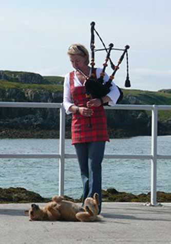During breakfast we enjoyed a beautiful sail to the Isle of Eigg. Here we were welcomed by the island’s piper, Donna and her dog, Pibroch (who likes to sing along with her pipes).