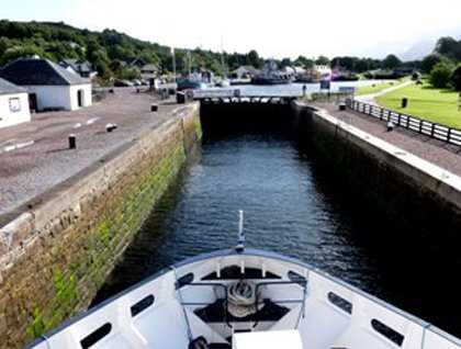 Not long after first light we loosened our moorings at Craignure on the Isle of Mull to make for the sea lock at Corpach, Atlantic entry to the Caledonian Canal. By now, tide tables have to be consulted and appointments made with lock-keepers and we had a strong, adverse wind to contend with. It made for a dramatic entry into the canal with all hands on deck and much moving of fenders. By the end of the morning our Captain, by common consent, had more than earned his day’s wages, for after the sea lock at Corpach comes celebrated Neptune’s Staircase, a flight of eight locks that raised the ship 64 feet in the space of 500 yards. We arrived at the top of Neptune’s Staircase in time for lunch, having had a short talk on the Scottish engineer Thomas Telford. He had won the government contact to construct the canal in the beginning of the nineteenth century during the time of the French Wars, when issues of national security suggested that a means of transferring the naval fleet rapidly from the Atlantic to the North Sea would be advantageous. His reputation had been sealed when working on the Shropshire Union Canal where his dramatic aqueduct carried the new canal high over the River Dee. He would later build the world’s first suspension bridge over the Menai Straits, another government project on the road linking London to Dublin via Holyhead.