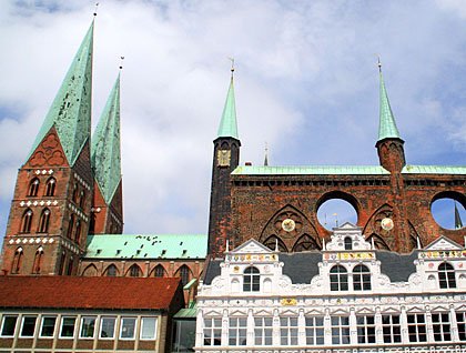 At dawn the Endeavour crossed from the Baltic Proper into the mouth of the Trave River. We’d been sailing west, into ever increasing salty water, and so then entering this freshwater and following it upriver. Coming in by ship, from the Baltic Sea, on the Trave River, seems an exceptionally appropriate way to approach the Medieval Hanseatic center of Lubeck, once the strongest and wealthiest of the Hansa League’s trading centers. From the bridge, our German captain, Carl, explained to some early rising guests, how this very river was once the frontier between the Cold War East and West Germanys. This helped us to understand the graphic difference between the cultural landscapes of each river bank. To the west, agriculture, factories, summer homes, to the east, second growth forest, marshes, bogs. Carl explained that during the divided days, the East German’s created a no-go frontier zone, one that was strictly monitored for any security breaches.