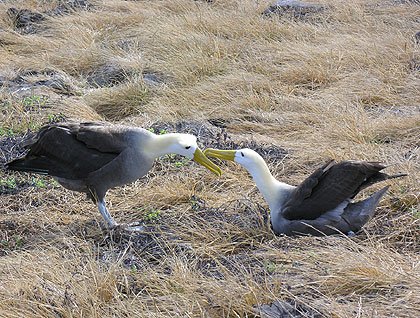 We passed by a colony of Nazca boobies where some juveniles were practicing how to fly; others were waiting to be fed and, not that far off, the highlight of the visit was the impressive Waved Albatross, one of the most beautiful sea birds that nest every year only here, in Española. We were lucky, as we encountered a couple of albatrosses right in front of us, doing the famous courtship dance as if nobody were watching them.