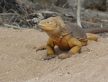 It is a beautiful morning at Dragon´s Hill located at the northeastern extreme of the island of Santa Cruz. Here there are around seven hundred land iguanas which were saved from extinction. Once abundant all around the arid areas of the island, these creatures were little by little decimated by introduced organisms such as cats, dogs, pigs and rats. The presence of goats and donkeys was also troubling, since they ate all vegetation and destroyed iguana nesting areas.