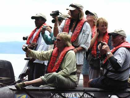 Common dolphins by the hundreds surrounded our ship. Most of our guests came out on deck to witness this impressive display; this was just the beginning to our visit to the western part of the archipelago.
