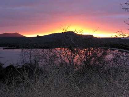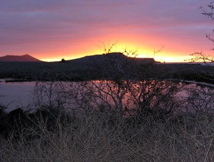 The afternoon’s most colorful highlights were the green olivine beach with its peridote crystals, the purely white flowery beach on the other side of the trail and the very pink Galápagos flamingos.