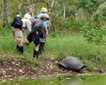 Wanting badly to go in the water as the sun was getting really strong, we came back in a hurry to put on our snorkel gear and jump in the water. What an incredible experience! The water was very clear, the temperature was perfect (75F) and we had lots of sea turtles around, in fact, they were everywhere! Turtles, fish and a curious flightless cormorant that felt in love with one of our guests, made our morning!