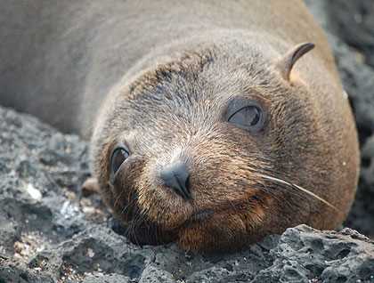 In the afternoon after a three-hour navigation along the northern shoreline of Santiago, we arrived to Puerto Egas. At this site we could do our last snorkeling. We found so much marine life; sea turtles and sea lions were the highlight. We also had a nice exploration on the coast, hiking over lava fields and sand. We came across lots of shore birds and the two different endemic species of sea lions, the Galápagos sea lions and the Galápagos fur seals. Both were very near our trail.
