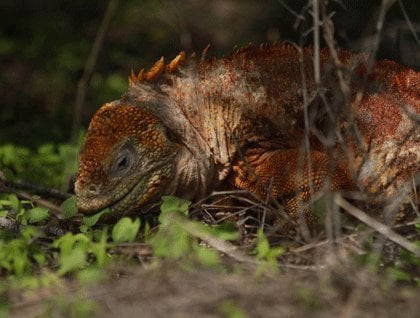 As we notice land iguana burrows on the ground, we come upon a very large female lazily crossing the path in front of us. Land iguanas, along with the giant tortoise, have had a hard time in the past with invasive species; currently we are working with thousands of caring people to return the island to a protected area and we see this before our eyes.