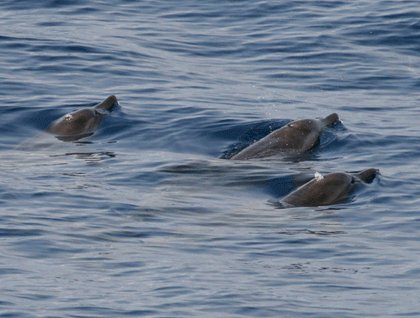 Today we “crossed the line!” As we approached the equator, Expedition Leader Lisa Trotter announced that there would be an opportunity for an early morning swim. Conditions here in the doldrums were perfect for it. There was no wind and calm warms seas beckoned us. The fact that we were swimming in some of the deepest water in the Atlantic, over the Romanche Fracture Zone made it even more interesting. The Fracture Zone, named for the French research ship, Romanche which first measured its depth is the largest such feature in the world and is 7728 (a bit over 25,000’) meters deep.
