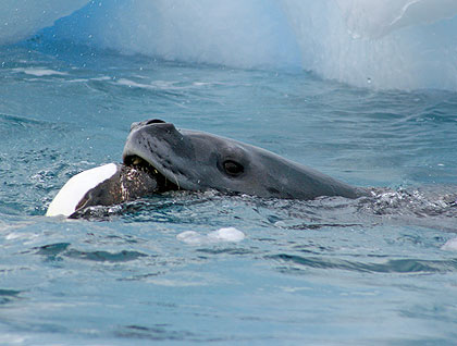 Those who decided to forgo a trip to shore went on a Zodiac cruise. Icebergs glistened in the sunlight and everyone was enjoying a view of them when, spotted off the starboard side of the ship, a leopard seal started chasing a penguin. We were all rooting for the penguin, but he was caught. It was fascinating to see the food chain in action.