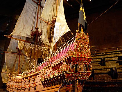 The object of our morning excursion was to visit one of the world’s great museums, opened in 1990, to house the Vasa ship which sank within minutes of being launched in 1628, a lasting metaphor for the hubris of Sweden’s great power status in the seventeenth century that met its nemesis at Poldova in the Ukraine less than a century later. Perfectly preserved in the brackish waters of the Baltic, the ship was lovingly excavated and restored through the fifties and sixties of the last century and never fails to astonish in its dramatic new museum setting.