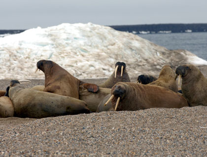 In the morning we landed at Torellneset, a walrus haul out site. There was a small group of male walruses resting on the beach. We slowly walked up the hill and looked out over the seals. A couple of animals swam along the beach before coming ashore to rest. It was an incredible opportunity to see these massive animals, which can weigh over 4,000 pounds, in their natural habitat.