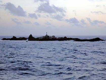 This morning at first light we sailed past SS. Peter and Paul Rocks. These rocks, which are 560 nautical miles off the nearest Brazilian soil are claimed by Brazil and are an important outpost of the country because they extend the Exclusive Economic Zone of Brazil far out into the central Atlantic. In order to enforce their claim, Brazil keeps a small group of rangers on the rocks year round. They are typically graduate students working on the boobies that nest on the rocks. The rocks are of considerable interest to geologists because they are composed largely of dunite, a rock that is pure olivine and which we think may represent the material of which the mantle of the earth is composed. Most of the sites where mantle material comes to the surface is in the form of volcanic lavas erupting on oceanic islands. By contrast, SS. Peter and Paul Rocks lie right on the center of the Mid-Atlantic Ridge and seem to represent a site where the crystalline mantle material has come to the surface without melting.