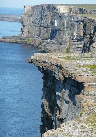 We spent the day among some spectacular geological formations…ancient, raised sedimentary deposits, to be more precise. During breakfast, the National Geographic Explorer anchored off Inishmore, the main island of the Aran Group. This island is composed of layered limestone that formed many millions of years ago when this region was located in a warm, shallow sea. It has since been raised far above the sea floor level and now is eroded into a landscape resembling Swiss Cheese.
