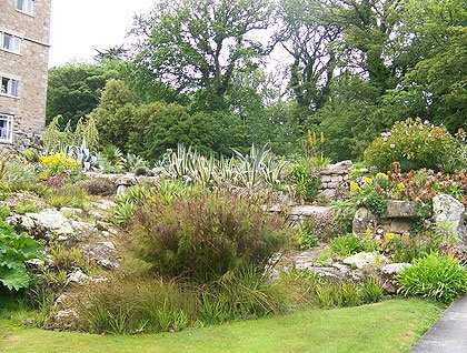 The focus of our visit was the gardens that surround the ruined remains of Tresco Abbey. It may seem surprising that there would be any gardens at all in this exposed location, but the real surprise is that not only are they substantial and remarkably abundant, but the majority of trees, shrubs and plants come from tropical and semi-tropical regions and countries. The gardeners who gave us a guided tour of these remarkable gardens explained that, thanks to the warm waters of the North Atlantic Drift (or Gulf Stream), the islands rarely get frost and the temperate summers and winters allow the exotic flora to thrive.