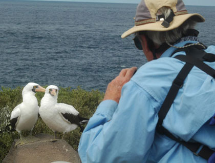 As if on cue, the lower stratum of mist lifted just as the NG Explorer arrived for a cruise along the cliffs. Our view was a text book array of erosional features sculpted by the ceaseless pounding of Atlantic breakers. Atop the highest point is O’Brien’s Tower. This was built by a nineteenth century landlord called Cornelius O’Brien as a viewing tower for visiting friends and colleagues. The cliffs are composed of alternating layers of Carboniferous shales and sandstones. The latter are locally known as Liscannor flagstone which has been quarried in the vicinity of the cliffs for centuries and is commonly used as a decorative flooring stone.