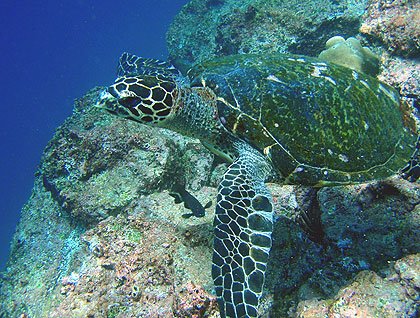 We returned aboard and got ready for the best snorkeling of the week with thousands of fish surrounding us. We were also astonished by the sighting of a Hawksbill turtle that was resting at the bottom.