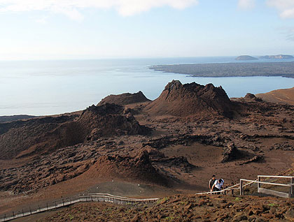 We start our day with an early landing at 6:30 am! The weather was perfect for our walk to the summit of Bartolome to see one of the most astonishing volcanic landscapes on earth. A wooden staircase brought us to the top of the Island and on the way we had the chance to see some endemic plants such us the tiquilia, the tomatillo and the lava cactus.