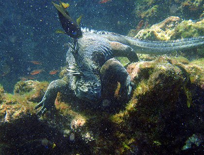 This morning we had a couple of options, one for long walkers and the other for short walkers. In both cases, we encountered several male and female land iguanas in their brightest colors because it is their mating season. We also witnessed a fight between two males land iguanas for their territory. The reason for all this activity is because the warm wet season is the best for reptiles and land birds to reproduce. There is a lot of food and fresh water, and, in the case of reptiles, the temperature is perfect to incubate their eggs.