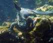 After we left Urbina we sailed again towards the southern realm of Isabela. We got close to Cerro Azul volcano which is where the last volcanic eruption took place last year. We explored a vast black lava flow. For a moment it looks like an ocean of rocks where the sound of blowing wind and desolation contrasts with some lagoons of brackish water; there, we encountered several oases full of green vegetation, and lagoon birds that call this place their home. One finds here cacti, mangroves, lava, penguins and cormorants in the same area, sharing the same spot!