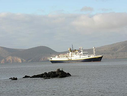 While anchored at Post Office Bay, today in the morning we enjoyed a battalion of storm petrels wandering behind the NG Islander. Something seem to be very appealing to them, and certainly even though we want to think it is the ship, we all know it is the large amount of food in the shape of plankton that is present in our ocean. It ends up being very emotional watching them “skating” at the surface of the water. Sometimes they seem to be levitating (which they for sure do since they fly) in a magical act.