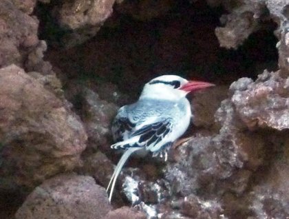On the vertical walls of the small islet we could see a group of red billed tropical birds that were nesting inside of fissures, leaving out their long tails or in other cases their red beak. Beyond, a group of swallowed tailed gulls slept pleasantly after a long night fishing (this species of gull is a nocturnal one). The water was transparent which enticed most of our guests to go deep water snorkeling. It was incredible; we swam for about an hour with juvenile sea lions. They followed us, inviting us to play with them and repeat their movements. It was really incredible.