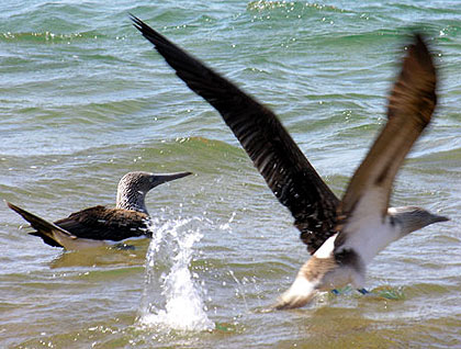 The NG Islander dropped anchor and we went for a panga ride around Champion Islet. We were delighted to find a couple of the rare Charles mockingbirds. These birds used to be numerous on Floreana but are now reduced to small populations on Champion and Gardner Islets. We also saw tropic birds in their nests, swallow tailed gulls, sea lions and a variety of short, stout prickly pear cactus endemic to Floreana.