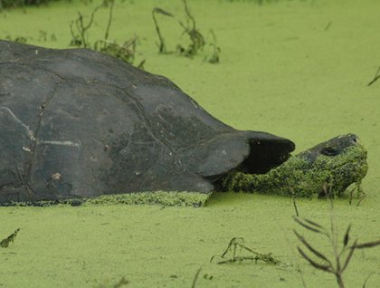 Once upon a time large numbers of Galápagos giant tortoises roamed in most of the large islands, they had abundant food and no predators to limit their growth; during the rainy season they ate and drank as much as possible, so that they could cope with the long droughts. No one has a concrete number for the historical population of these creatures, but it is estimated that perhaps between 200,000 and 300,000 individuals were removed from the islands. Pirates, buccaneers, whalers, scientific expeditions and early visitors would take tortoises for their private collections; the threat to their existence was continued with the presence of human settlements. These first inhabitants brought (and in many cases abandoned) animals as part of their livestock, which then became feral and reproduced by the hundreds. These wild animals turned into tortoise predators; they destroy all vegetation (including nesting sites), and will eat every single egg or hatchling, allowing the tortoises no chance for survival by increasing and replacing their populations.