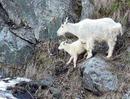 It was a bright, crisp morning as we navigated gingerly through the maze of ice fallen from the Sawyer Glaciers. We dropped Zodiacs to go in for a closer look and found three mountain goats and two kids playing low on the valley wall. They attempted to climb the steep rock face with mixed results. The aft bridge deck was full of quite wonder as two hummingbirds whirled about with curiosity. The sounds of crackling ice and falling water accompanied the circling movements of birds in the distance. Kayakers paddled in respectful awe as, not so far off, a large iceberg shifted and tumbled.