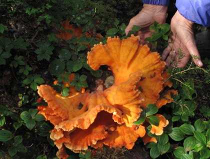 A jubilance of orange, a fungus, a eulogy for the tree written in the strands of mycelia, slowing decomposing and morphing the strong and resilient cellulose fibers to nurturing soil.