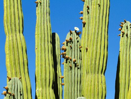 We pulled into a bay at the southern end of Isla Catalina, a granitic island that was never connected to the Baja peninsula. After a slightly early breakfast we ventured ashore for walks along a picturesque arroyo surrounded by immense cardon cactus. One of the island’s most distinctive plants is the quasi-endemic giant barrel cactus which also dotted the hills. Many birds were flitting to the tops of the tall cardons to visit the pale, cream-colored blossoms that adorned these stately cacti. White-winged doves were calling softly in the morning air, and shrill ladderback woodpeckers chattered occasionally. We were also treated to brief views of bright red northern cardinals that are also residents of this desert island. Some people chose to join a long hike, while others ambled slowly in the desert before heading back seaward for snorkeling with colorful fish around the “Elephant Rock.”