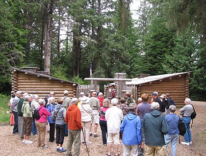 After breakfast, we disembarked in Astoria for the Columbia River Maritime Museum where we were impressed by the magnificent displays showing sailing ships, the salmon-fishing and -canning industries, and the role of the Coast Guard in keeping mariners safe. Later we went by bus to Fort Clatsop to see the Interpretive Center and the replica of Lewis and Clark’s 1805-06 winter fort deep in the coastal rain forest. We gained a much deeper appreciation of the trials faced by the Corps of Discovery during that very rainy winter.