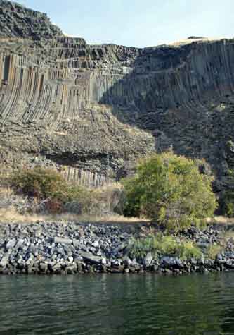 Whether one chose to take an exciting journey up the Snake River by jetboat or to explore the Lewis and Clark sites along the Clearwater River with historian and storyteller Lin Laughy, this exquisitely perfect fall day was exceedingly well spent. Up on the Snake River, we rode swiftly over the rapids, spotted lots of wildlife and talked about the special geological features found in the Hell’s Canyon. Rocky Mountain bighorn sheep were spotted along the steep and rocky canyon walls, and graceful, big-eared mule deer were also in evidence. Below the Columbia River basalts, from the Idaho border four hundred and forty miles west to the Pacific Ocean, are a series of exotic terranes. Much of the west coast of North America is made up of islands arcs and mini-continents that floated across the Pacific on the Pacific plate and were scraped off and smashed against the North American continent many millions of years ago.