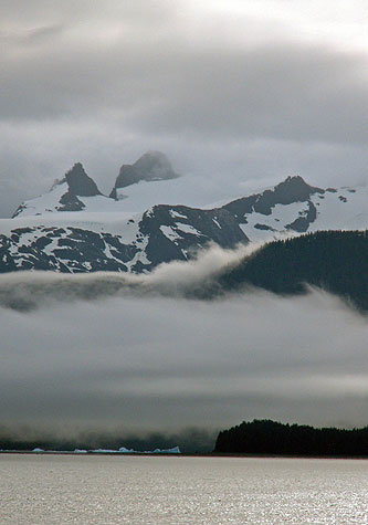 A white cotton shawl of clouds draped the shoulders of the ice-capped coastal mountains surrounding Frederick Sound as we sipped our morning coffee on the bow. It rained last night, our first real evidence of the moisture that has allowed the remarkable biomass of this temperate rainforest we’ve been traveling through to develop. An offshoot of the Japan Current called the Alaska Current tempers the Pacific Ocean along the northwest coast of North America, creating a relatively warm, very wet maritime climate… the conditions that favor large conifers.