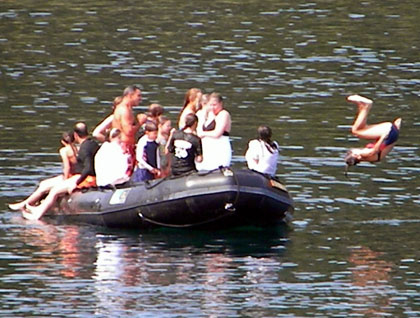 All too soon the morning passed, though many of us were just a tad over heated from extremely high air temperatures. An offer went out for a chance to swim in the clean and very refreshing waters of Southeast Alaska. Sixteen hearty souls went by Zodiac a hundred yards away from the National Geographic Sea Lion and jumped, dove, flipped, and slid into the refreshing waters of Pavlof Harbor. The yells could be heard back aboard, not to mention the laughter and joy of taking a northern plunge just to say we did!
