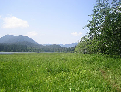 Early morning sends us cruising north up the waterways of the park, stopping at some of the most scenic and wildlife rich areas along the way. Stopping at South Marble Island, we see that its outlying isolated rocky extensions create a perfect haul out for Steller sea lions. Yet the main island, a combination of rocky ledges and small hills covered with grass and purple wild flowers, is the perfect habit for nesting kittiwakes and tufted puffins. We watch with amusement as the seals tussle amidst a cacophony of kittiwake cries.