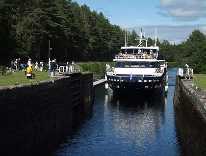 Our view was perfect, as the captain expertly maneuvered the ship into position. After observing their foraging for awhile, quite unexpectedly both bears rose simultaneously on their hind haunches peering and sniffing in the same direction. Off on the forest margin we saw the darting of a deer caught by the surprise of coming upon the bears. Eventually the brownies moved out of sight – but what a way to start the day!