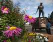 At Pavlov Harbor, the site off our afternoon explorations, there is a beautiful stream where salmon spawn. Once again, tides and weather cooperated beautifully, and kayakers, zodiac riders, and hikers all got a view of the waterfall that graces this stream with its multistranded cascades. In the bay, fish were jumping, feeling perhaps that primal urge that soon will impel them to leap the cascades, spawn, and die. Along the stream, spruce and hemlock towered, beneficiaries too of the salmon that bring the nutrients of the ocean back to the land, feeding nearly every living thing. As if for our visit, the intertidal zone was exposed, the beach meadows blooming, and the forest standing still and intricate with mossy leafy detail.