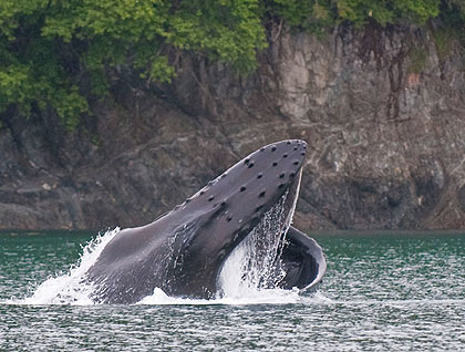 Last night we steamed all night to travel from Frederick Sound to Saginaw Channel, near the northern tip of Admiralty Island. Whales had been sighted engaging in some very interesting behavior in the area, and we wanted to see it for ourselves. We sought humpback whales in the mist, meandering the waterways to check out each sighting.