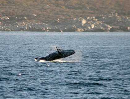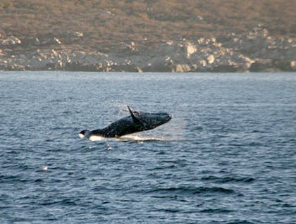 By midday we left the town, and sailed east, then north, into the Gulf of California. En route we saw some humpback whales during their mating efforts, males fighting each other, and females with calves. Breaching was obsereved quite a bit!