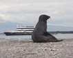 All of these birds are adapted for their way of life. They all can swim, fly, dive, and fish above the water surface looking for their food, all except the frigatebirds. These birds have sacrificed all of this for maneuverability in the air; they are as airborne as no other animal is. Today we were witnesses of that; a white headed juvenile did what experience tells older individuals not to do: miscalculate. This animal somehow got trapped in the water, as they are incapable of lifting flight once they get waterlogged, it was pretty much doomed. One of our Zodiac groups was there in time and rescued it from its inescapable fate. Wet, exhausted, scared and disoriented, it was brought on board and left to dry and rest on the bridge deck. Less than two hours later, it took off onto the rocky edge of the nearest island. Hopefully it learned an important lesson as it had been given a second chance.