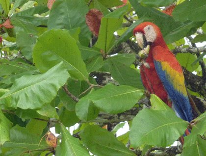 Right after breakfast, we went for a nature walk on the private preserve of Caletas bordering the Corcovado National Park. Soon we saw why this part of Costa Rica is considered one of the most intense biological places on the planet. During our walk, we saw a troop of spider monkeys having a confrontation with a troop of white-faced capuchin monkeys. All this happened up on the trees just above us. Another group found a couple of the endangered scarlet macaws eating the fruits and nuts of the beach almond tree right next to the trail. So close to us that we could hardly believe what we were seeing.