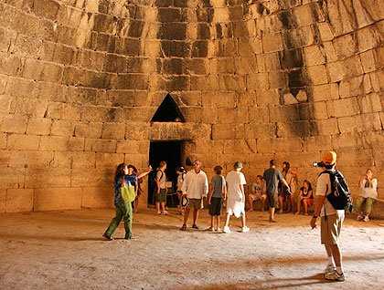 The amazing fort was sparkling, perched on the cliffs. We started early on the way to Mycenae, ‘MYKHNES’ in Greek, the headquarters of one of the most famous Greeks, Agamemnon, the leader of the Trojan expedition. We visited his citadel, his palace and the tombs of his grandfathers. When we were studying his megaron I tried to envision the youngest members of my group this day as ancient Greek heroes. Scott would definitely be Odysseus because of his interesting remarks. Ryan, the quiet Achilles, being blonde and a great athlete. Of course, Danny, good at sports (he won one of the diving contests) is Ajax. Zac is so like Hercules and Edward, with the impressive hairstyle, resembles Diomedes. Kevin reminds me of the wise king Nestor. The girls are all very graceful so we have two Helens. I can imagine them dressed up as ancient Greek gods and heroes watching out for ships mooring in the Argive Gulf.