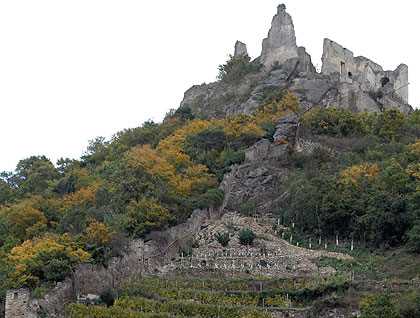 Afterwards, we had our recap in the wine cellar and were entertained by Lucy Russell’s rendition of The Song of the Niebelungs, Sharon Grainger’s stories of the history of chocolate accompanied by a chocolate tasting, and Ray Russell’s commentary on the coffee culture of Vienna. The evening afforded us an extended view of the illuminated tower and ruins of Dürstein.