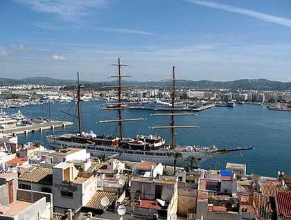 Signage in the museum as elsewhere on the island was in both Catalan and Castillian, a reminder that Spain is a centrifugal state. Historically, Castille, the impoverished center of the country, has drawn revenues from the richer provinces, the industrial northwest, occupied by the Basques, or the commercial southeast, occupied by the Catalans. Since the death of Franco and Spain's subsequent membership of the European Union, Spain has been a prime example of what political commentators have termed the "hollowing out of the nation-state". Madrid has ceded powers both upward to Brussels, the executive center of the EU, and downward to its regions, notably the Basque country and Catalunya. Contemporary Catalunya, as our visit to Barcelona (its capital) yesterday and to the Balearics today confirmed, is vibrant and flourishing, openly celebrating its cultural distinctiveness and proud of a rich historical legacy. And there could be no better way to engage with that heritage than to enter the splendid harbor of Eivissa on board Sea Cloud II for our morning visit of the town and then to spend the afternoon under full sail navigating a course between these beautiful Mediterranean islands.