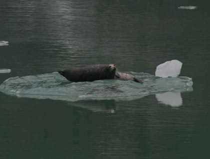 Growlers clunking along the hull, arctic terns winging along with us, we edged up toward the glacier face and let it fill our view during breakfast. We spent the remainder of the morning deciphering the geologic history of Endicott Arm as we made our way out to its mouth. A few harbor seals were hauled out, resting on the floating ice, lifting their wide-eyed heads to watch us pass. Other harbor seals popped up in the water, some of them mothers with pups just a few days old. In fact, on one piece of ice, we saw a pup so young that its pink umbilical cord was still visible as it lay on its side next to its mother. That such a new thing could live among such old rocks is nothing short of amazing.