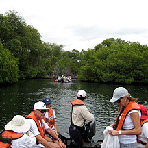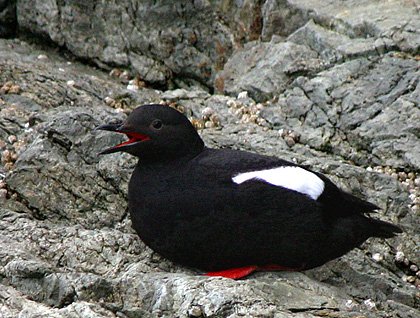 We dropped anchor at George Island, a small spot of granite plunked right at the opening of Cross Sound. There, we explored by all means available to us: foot, Zodiac, and kayak. What a spot to explore! Walkers were treated to tidepools and spectacular spring flowers like these shooting stars. Kayakers paddled over forests of bull kelp. Zodiacs nudged up to the cliffs and were able to approach red-footed pigeon guillemots and white-patched pelagic cormorants close enough to hear their cries.