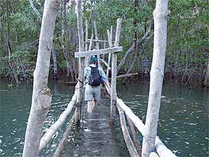 Even before sunrise, the spouts of gray whales could be seen against the dark of the mangroves. Their soundless breaths formed light columns of vapor. After the clang of the anchor we slowly cruised the few short miles to Boca de Soledad. Flocks of cormorants and brown pelicans commuted out to their feeding grounds and a coyote traced the dunes.