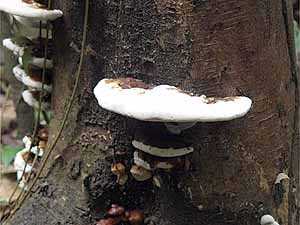 In the picture we see the vegetative fruit of a fungus coming out of a rotten tree. Fungi and bacteria are saprophytes. They are extremely important organisms because they digest all the dead organic matter of the forest and break it in to the nutrients the forest requires. Without them this dead matter would take a longer time to decay. In other words, they are in charge of recycling most of the energy of this forest.