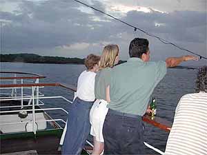 There seems to be a direct relationship between moving south and our morning wake-up calls; the further south, the later our breakfast! We finally could sleep in, until 8:00 am! We sat out at the bow, the best place to be on the ship, and what a surprise, it was windy and cold! Some of us had to run down to get our windbreakers or long-sleeved shirts to stand watch for marine life. Our persistence and patience were rewarded with fourteen blue-footed boobies and Pantropical spotted and bottlenose dolphins, which came to ride the bow.