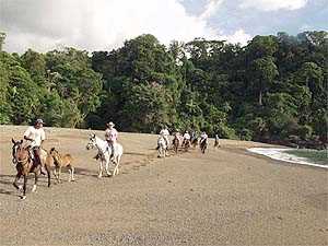 Our picnic lunch was a delightful array of food laid out by our crew on a lovely beach known as Punta Caletas. In the afternoon, we divided again into different groups; the “stationary hike” as Ged likes to call it, consisted of a few hours of leisure spent in a beach hammock, reading a book, enjoying the scenery or simply sleeping. The more adventurous took a pleasant walk in the nearby forest searching for the ever-charismatic scarlet macaws, or rented horses and went for an exciting ride along the coast.