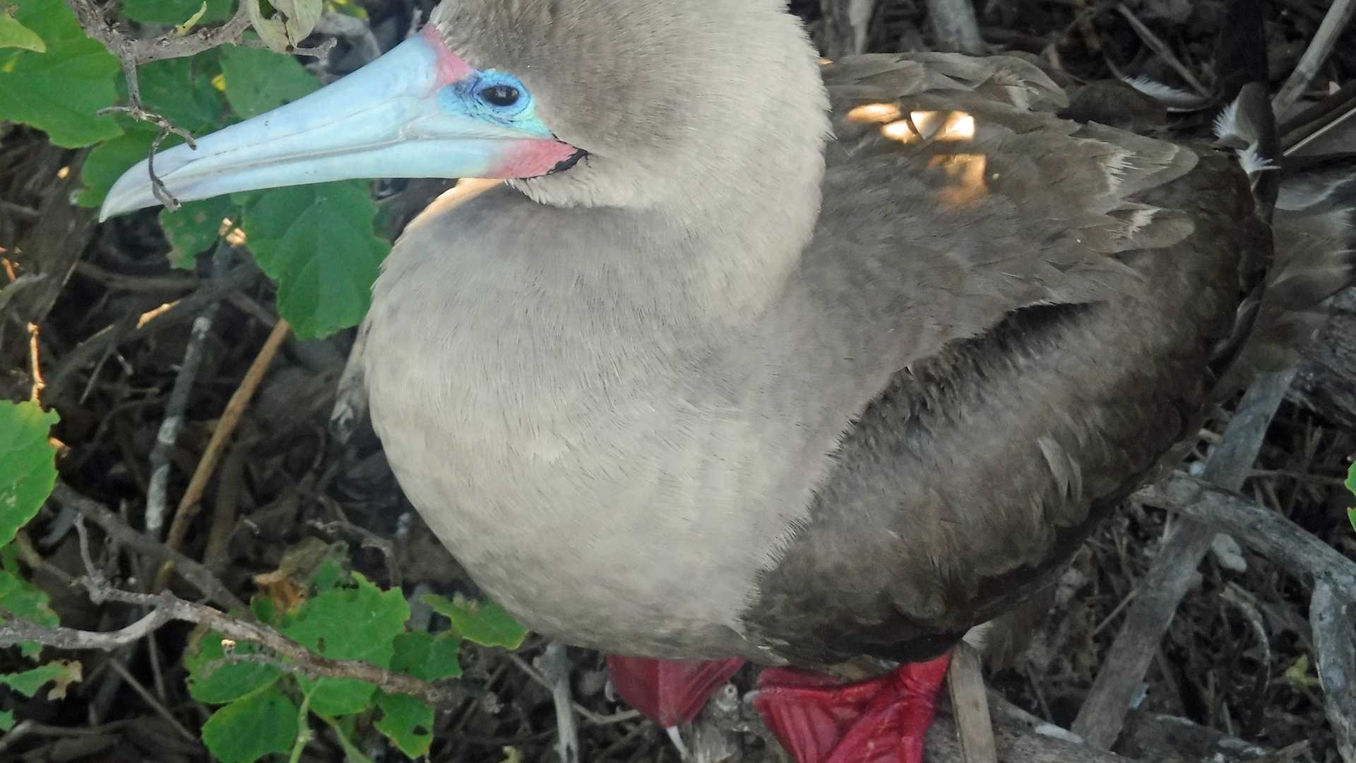 The white coralline beach and the red mangroves are the nesting place for red footed boobies. Minor frigate bird males are beginning with the mating ritual again today; a few bachelors are displaying their half inflated pouches to females that don’t seem to be particularly interested in them yet!